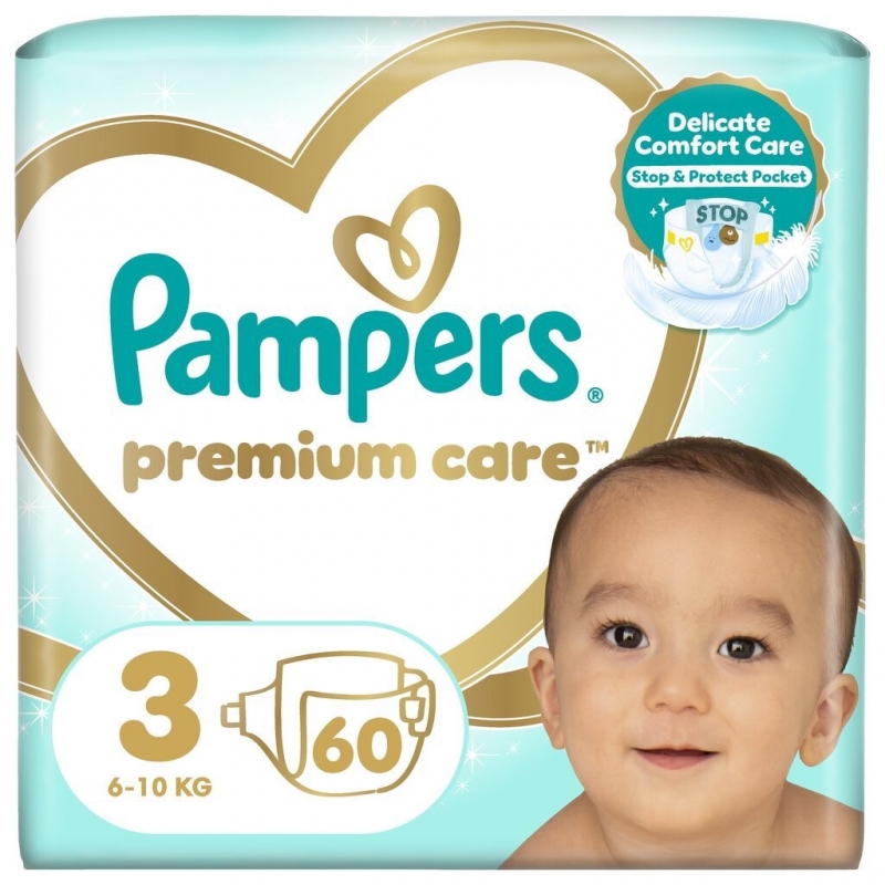 Pampers Premium Care - trijų sugeriamųjų sluoksnių sauskelnės. Dėl specialaus korėto sugeriamojo sluoksnio yra geriausiai sugeriančios Pampers sauskelnės. Veikia penkių žvaigždučių apsauga: